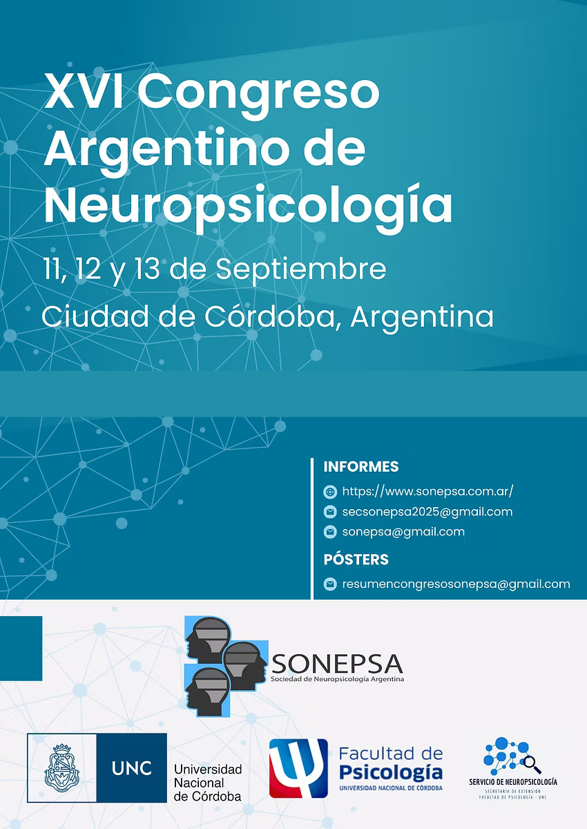 Estamos organizando el XVI Congreso Argentino de Neuropsicología que será los días 11, 12 y 13 de septiembre de 2025 en la Ciudad de Córdoba.